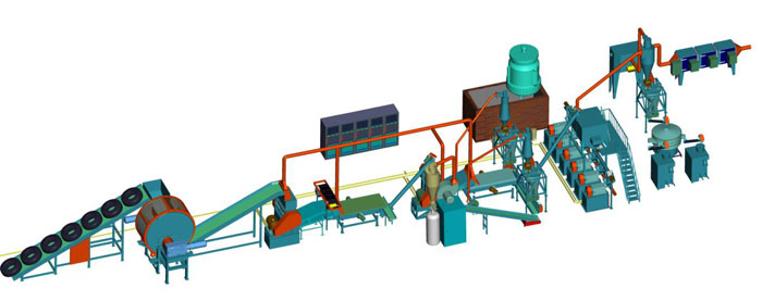 采用PLC控制系统,操作及维护简单,年处理5000吨废旧轮胎制取胶粒生产线每班只需4—5人;